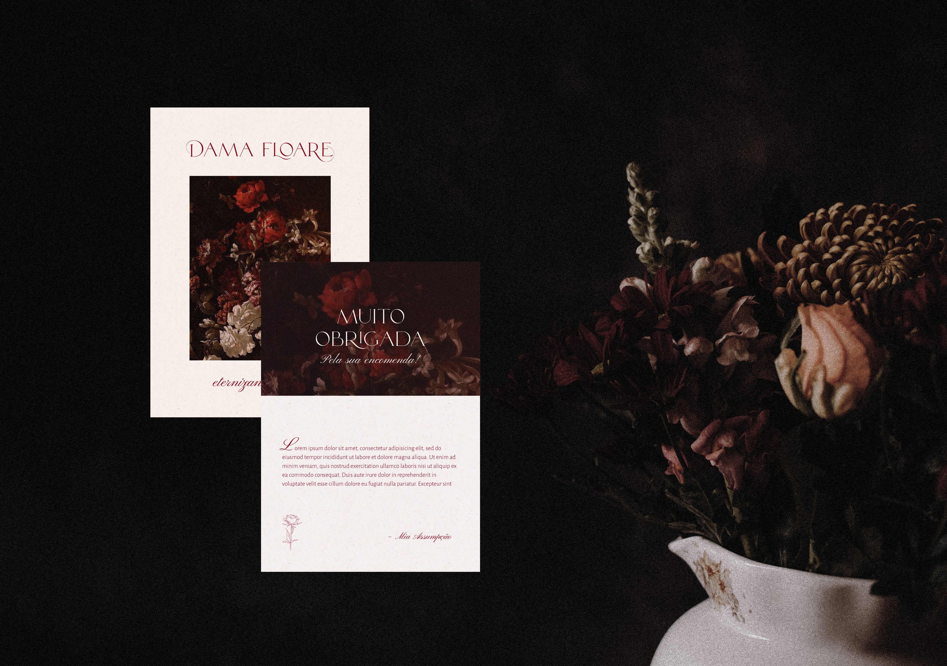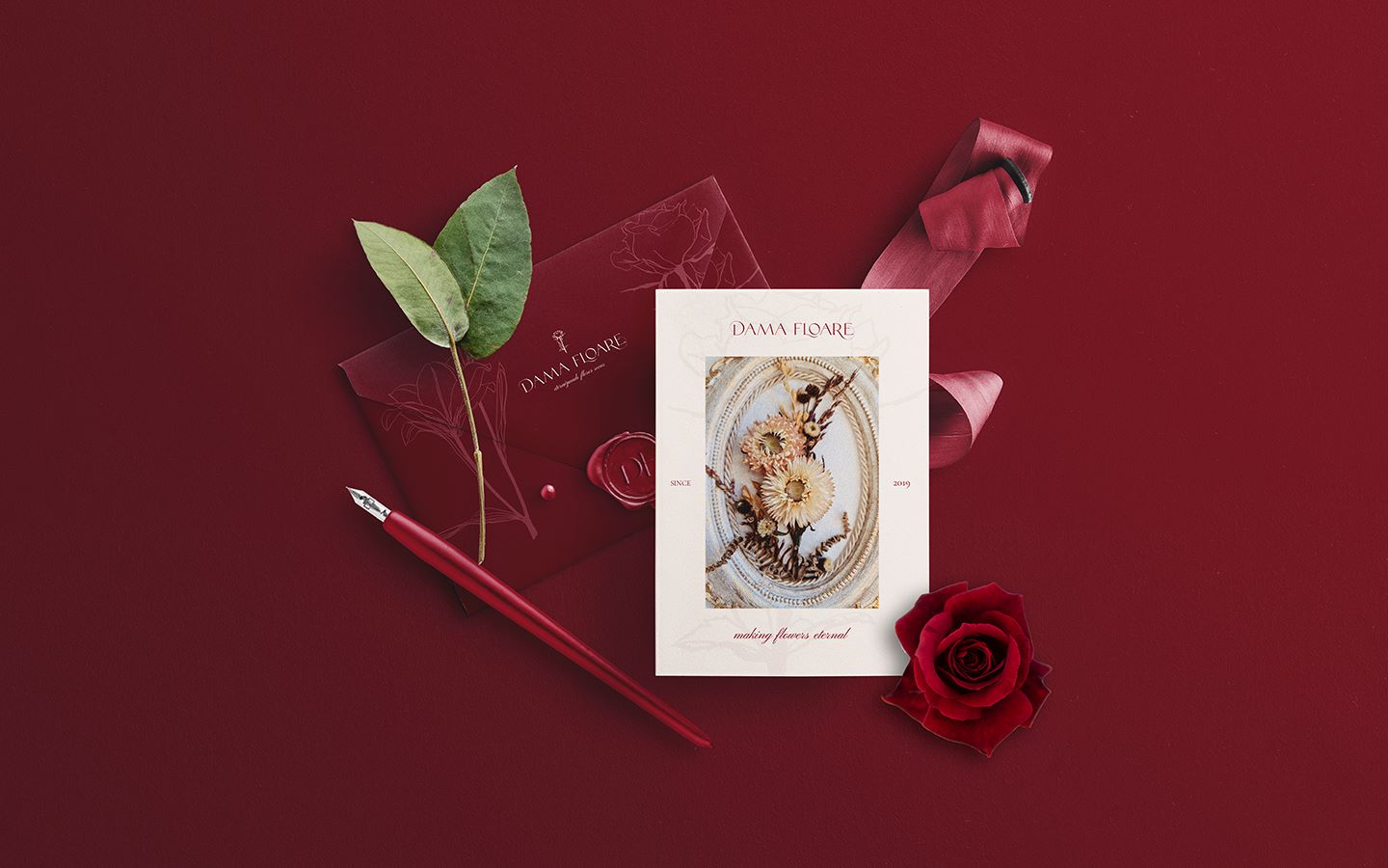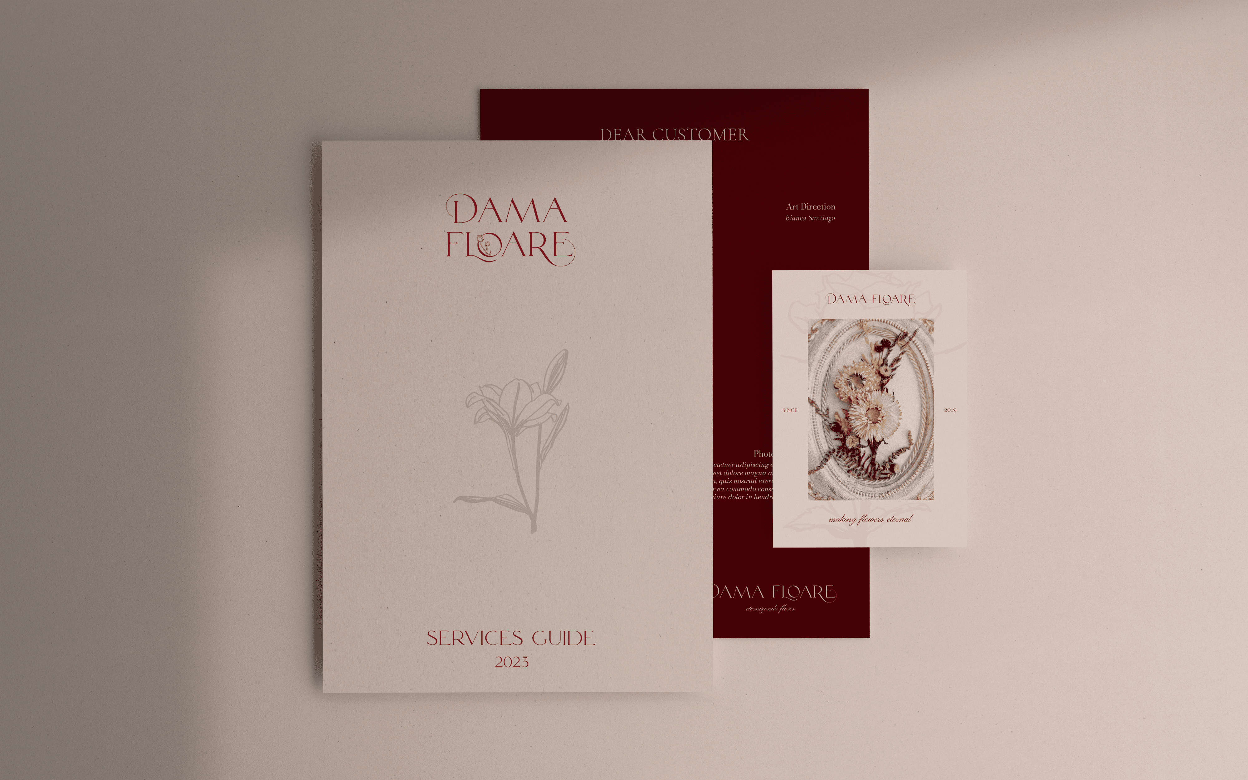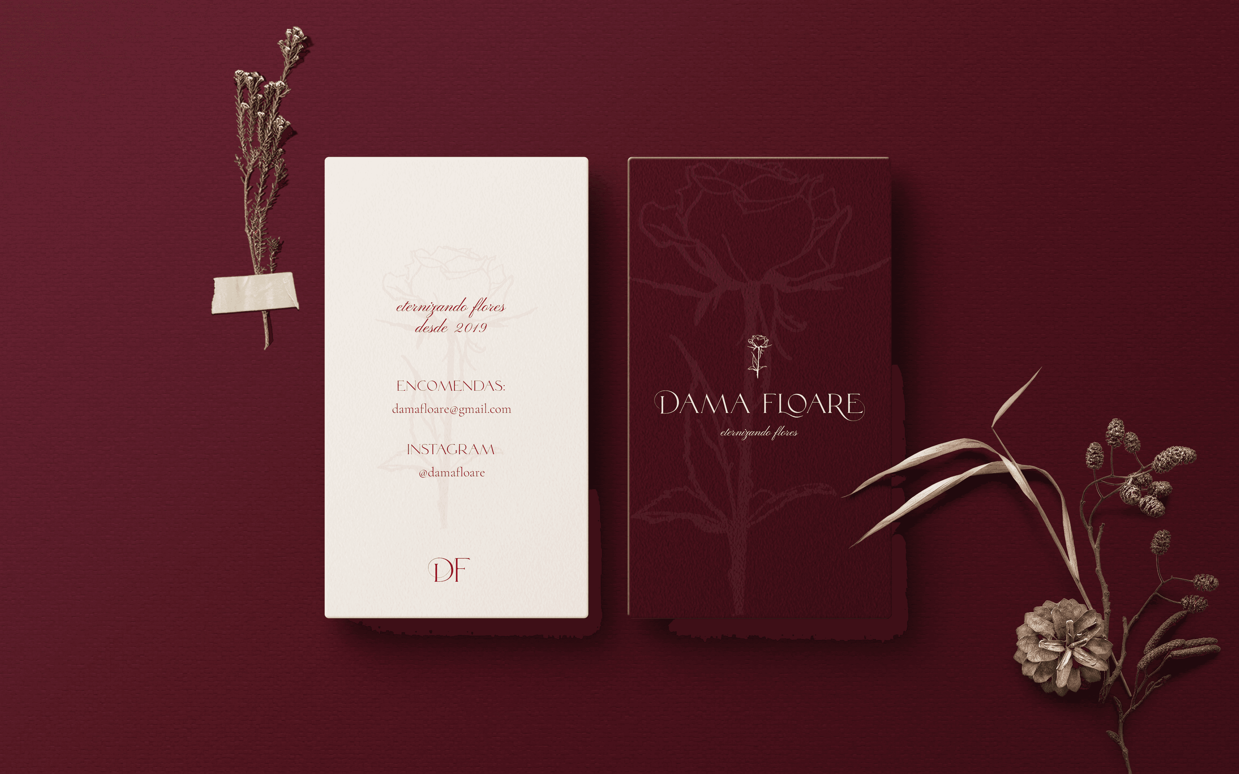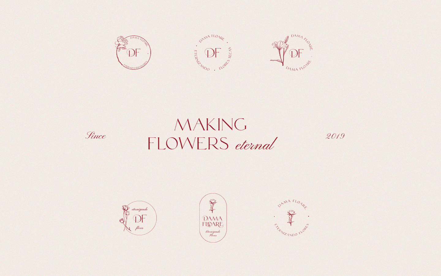 Dama Floare started as a personal hobby in mid-2019 before growing into a professional floral design brand rooted in Romanian culture, art, and poetry. The brand's defining characteristic is its use of artificial specimens, a deliberate choice that keeps each piece sustainable and long-lasting without sacrificing quality or originality. The identity needed to honor that ethos while feeling refined enough to attract clients who want something personal and meaningful, not just decorative.