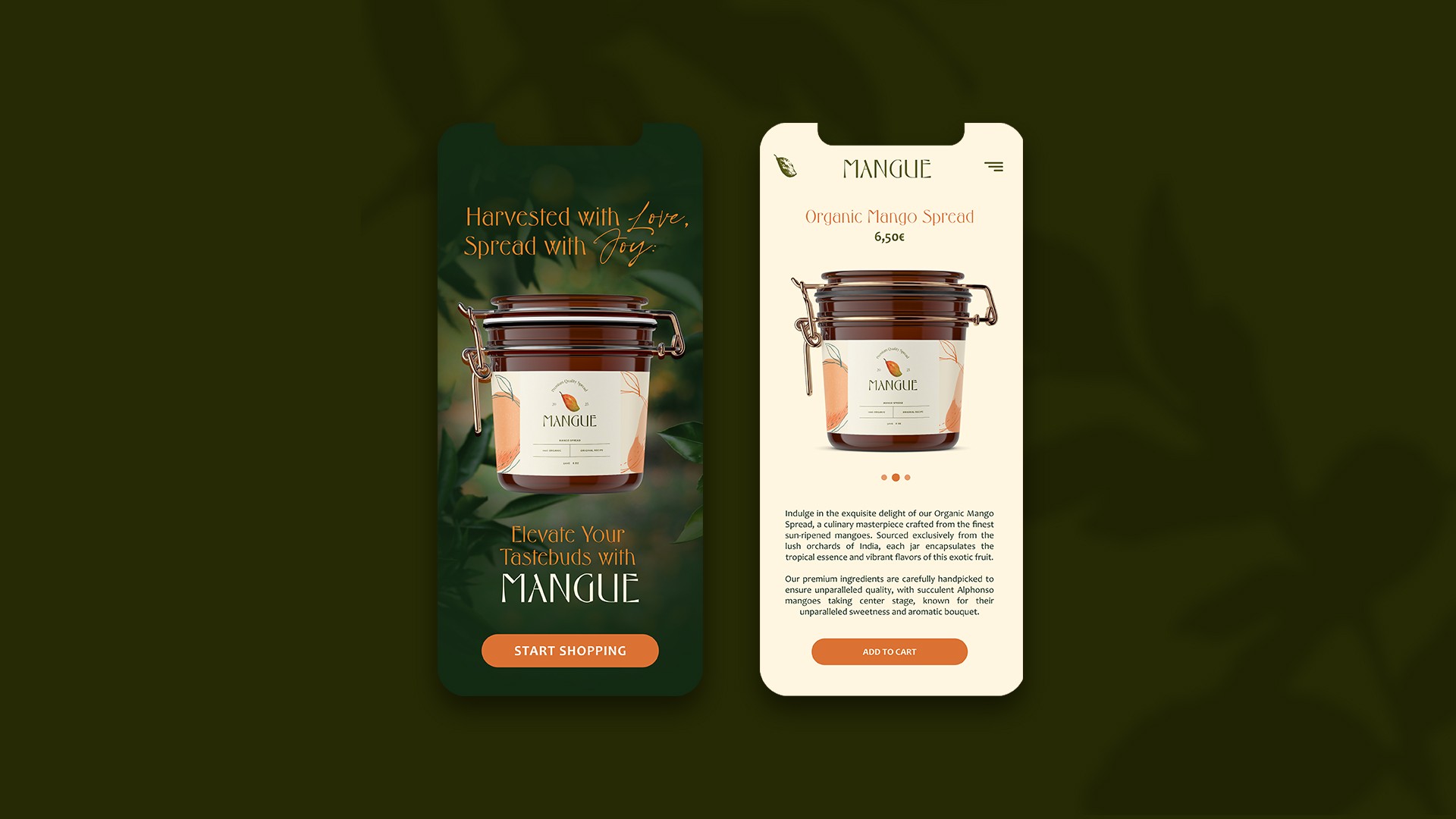 The main challenge was to create a premium, tactile brand identity for an organic mango spread that reads handcrafted on the shelf, communicates freshness, and feels authentic without being rustic or cheap. The identity should scale across labels, hero photography, and limited collateral.