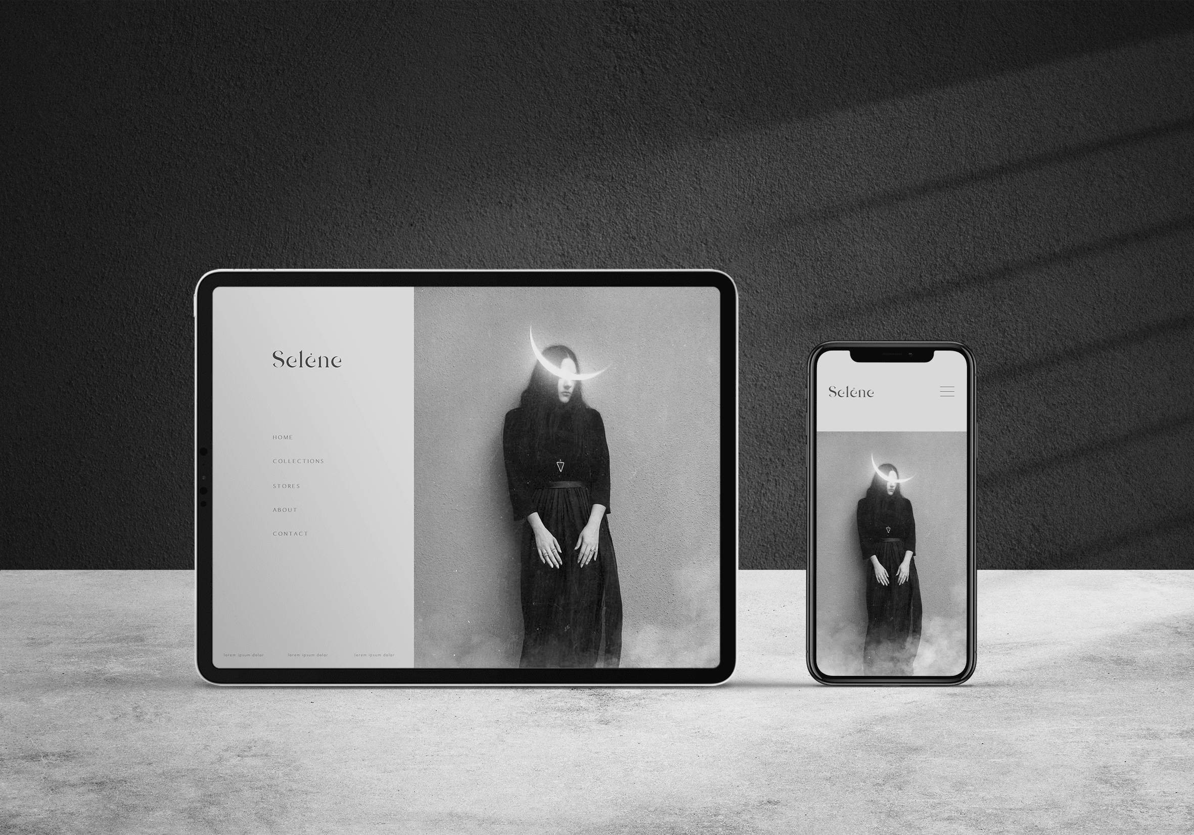 Selene is a jewelry store specializing in alternative pieces for women who want something outside the mainstream. The brand name draws from Greek mythology, where Selene is the goddess of the moon, and that reference became the foundation for the entire identity.